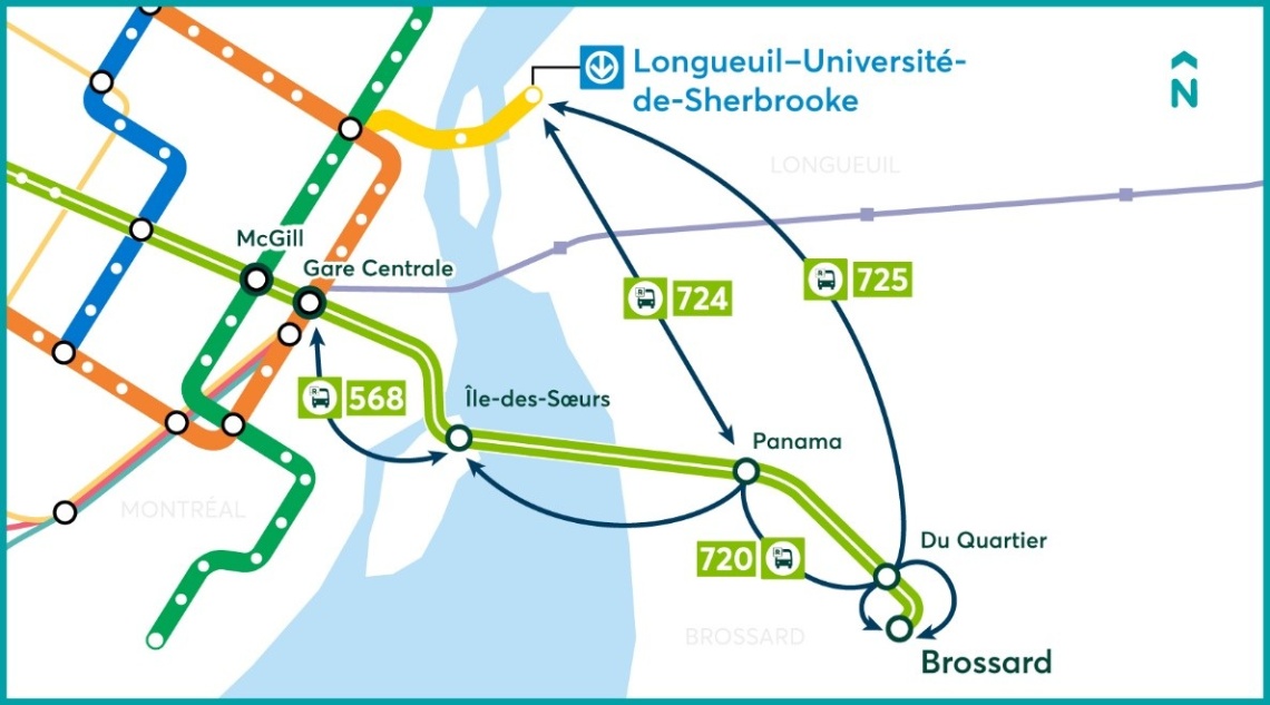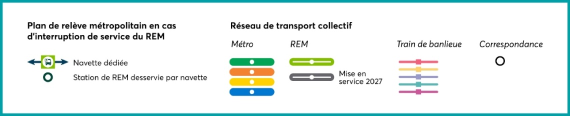 Consultez ci-dessous la légende des cartes du plan de relève métropolitain en cas d’interruption de service du REM.