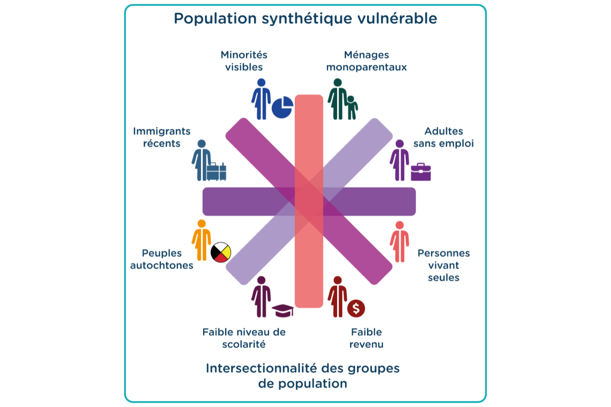 Les populations potentiellement vulnérables sur les plans socio-économiques (définie de façon intersectionnelle à partir de critères illustrés dans la Figure 1) et le reste de la population.